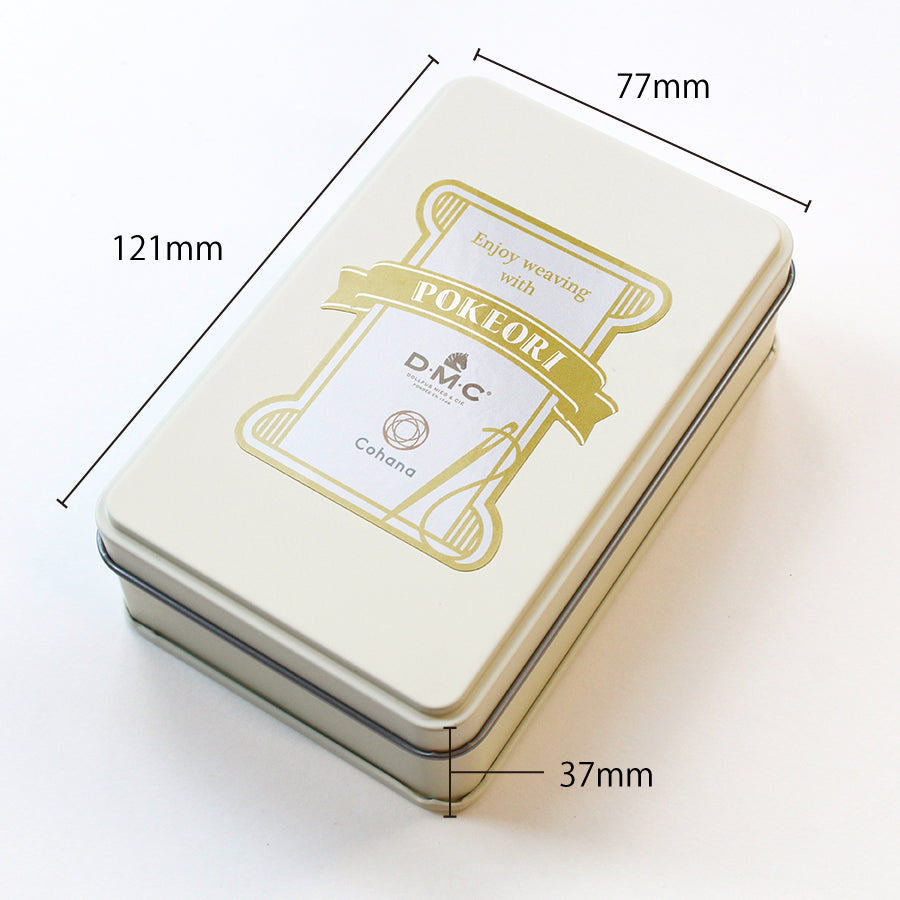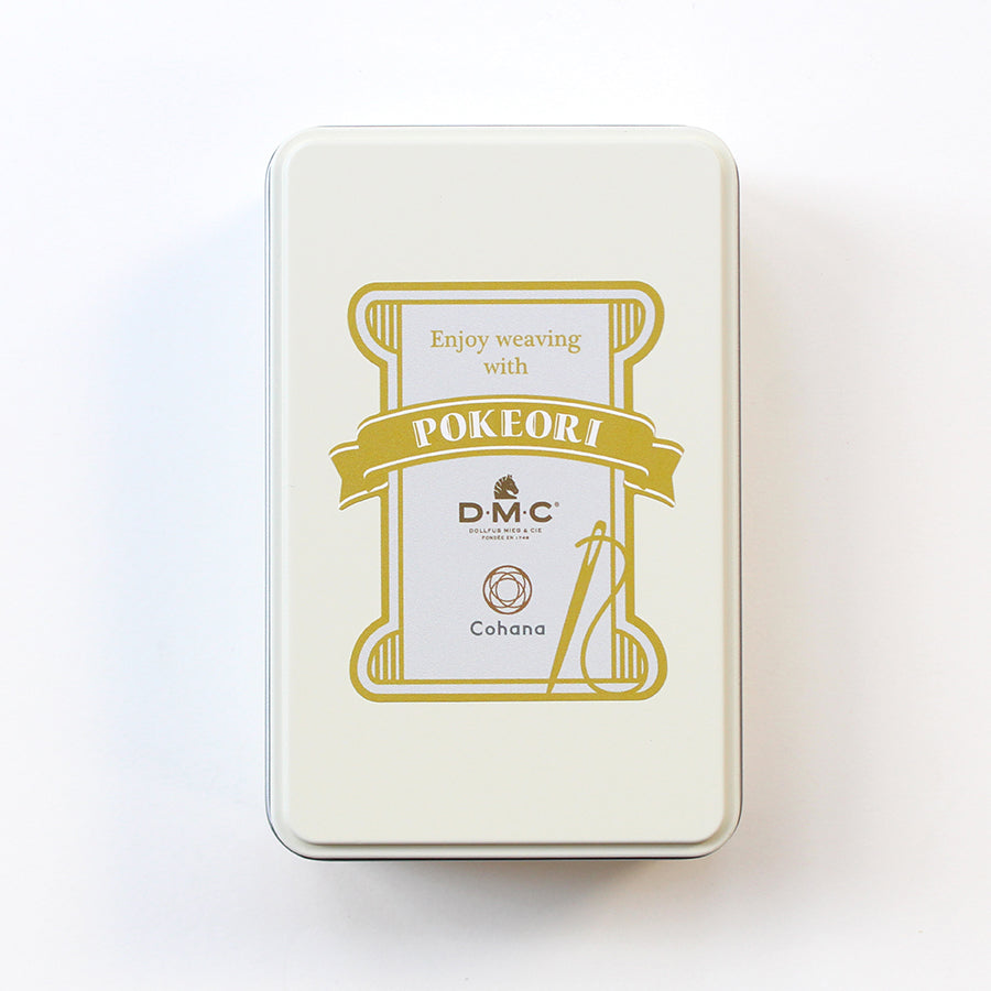 刺しゅう糸の老舗「DMC」の美しい糸と、「Cohana」の道具が出会って生まれた、宝箱のようなポケおり缶。ミルクホワイトの限定缶に、心ときめく特別な道具たちをぎゅっと詰め込みました。